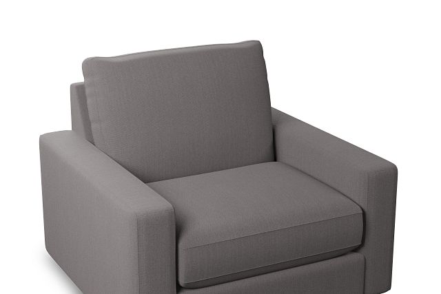 Enjoy custom style with superior value and fast delivery. Our Edgewater collection is available in over 50 fabrics, with a versatile base that can go in any style direction. The exclusive design is made in America at our Kevin Charles factory, using down-blend cushions and a reinforced frame with padded sides and backing for superior comfort and quality. Shown here upholstered in our Peyton gray fabric, a polyester LiveSmart fabric made with performance technology that is moisture repellant, stain resistant, and designed for heavy-duty wear.