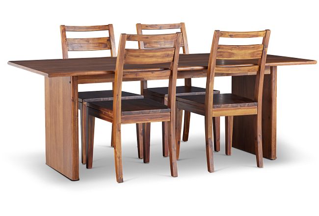 Bowery Dark Tone Rectangular Table & 4 Wood Chairs