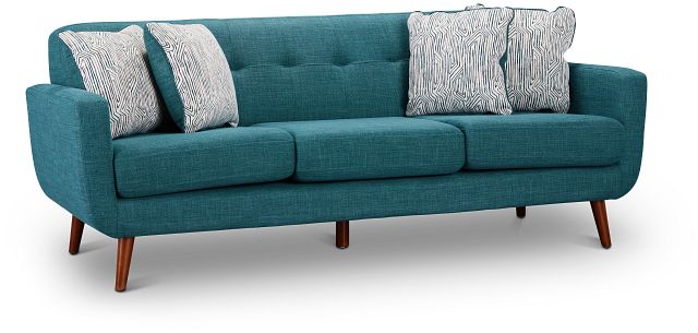 The Raya Dark Teal Fabric Sofa is a stylish and contemporary addition to any living space. With its mid-century trend design and dark teal color, this sofa is sure to make a statement. Made with high-quality polyester fabric and engineered wood frame material, it offers both durability and comfort. This modern living sofa is perfect for relaxing and entertaining guests.