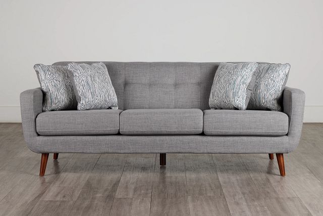 The Raya Light Gray Fabric Sofa is the perfect choice for those seeking a sleek and modern addition to their living space. With its mid-century design and light gray color, this sofa effortlessly combines style and comfort. The polyester fabric upholstery ensures durability and easy maintenance. Constructed with a sturdy engineered wood frame, this sofa is built to last. Enhance your modern living room with the Raya Light Gray Fabric Sofa and enjoy its timeless appeal and cozy seating experience.