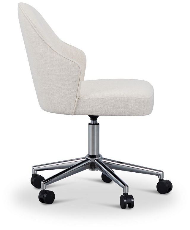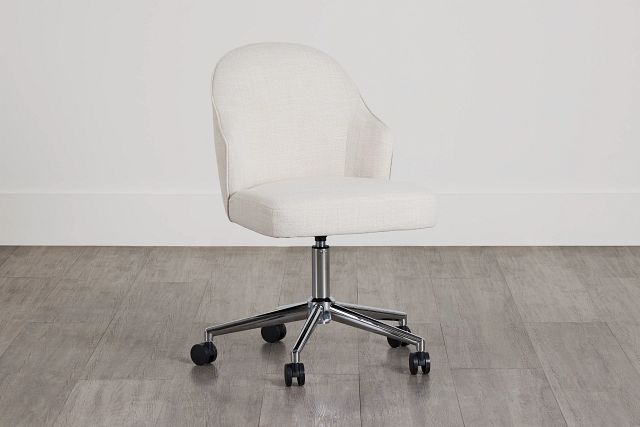 The Paige desk chair is the perfect addition for any home office. Its soft fabric upholstery, flared back, and curved profile offer mid-century flair. Complete your tasks comfortably thanks to the foam-fiber seating. The five-caster stainless steel wheelbase is shiny and sturdy—plus, easily maneuverable.