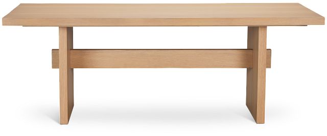 Our CITY-exclusive Park Ridge dining collection is up for anything, from everyday meals to special occasions. Simple lines marry perfectly with the fresh light finish, offering great contemporary style at even better values. The rectangular Park Ridge trestle table has a trestle bar that passes through both legs. This table features a wood veneer surface over rubberwood, supported by solid wood legs. Seats up to six people.