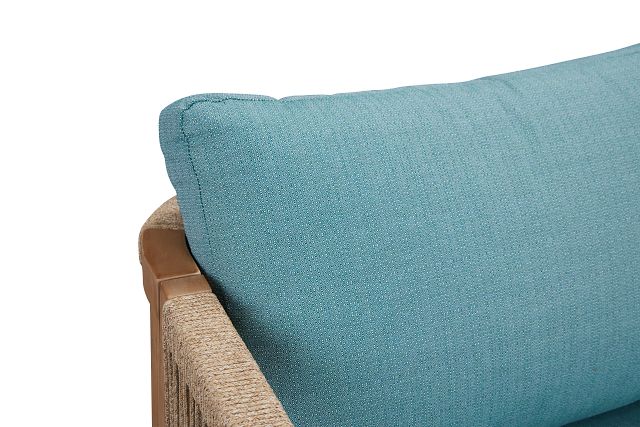 Turn your patio or backyard into a sweet escape with the Laguna loveseat. The acacia frame is wrapped with rope for an open and airy look. Slanted legs complement its laidback profile. The Laguna collection is water-resistant and UV-protected, so you can enjoy fun in the sun for years to come. The durable, solution-dyed polyester fabric is fade-resistant and made of non-toxic, recycled materials.