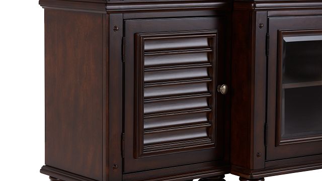 Introducing the Savannah Complete Entertainment Wall! This dark brown beauty is made with solid wood, ensuring durability. With roller glides, your drawers slide like a breeze. It comfortably accommodates TVs up to 72 inches. The sleek frame and black case hardware enhance its coastal trend style. Experience convenient cable management and the convenience of built-in lighting. Exclusive to CITY, this stunning piece offers 6 adjustable shelves and 2 fixed shelves for customized storage. Bring home the ultimate entertainment experience!