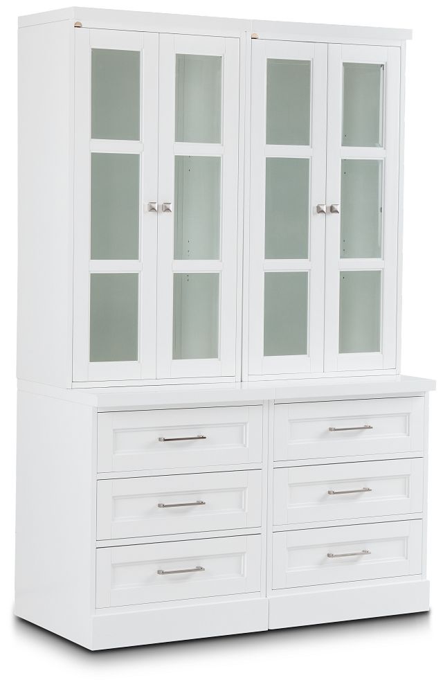 Includes: 2 drawer cabinets and 2 door piers The Newport drawer bookcase brings a new and exciting element of style to your home office or entertainment area. Spacious and easy on the eyes, this bookcase features a well-crafted drawer cabinet that includes three spacious soft close drawers. Perfect for organizing paperwork and other office essentials, it is a stunning part of your modular home office collection. Complete with beveled edge door glass, an overhead interior ceiling light, cable management cutouts and ample space to showcase your love for reading. Choose the configuration that works best for you.
