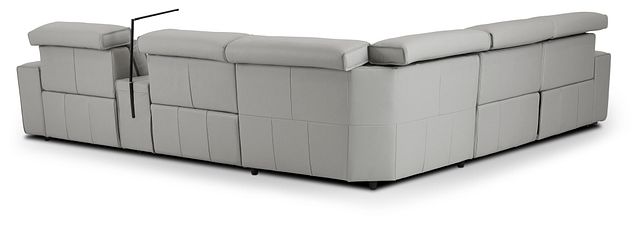 Carmelo Gray Leather Medium Triple Power Sectional W/left Table & Light