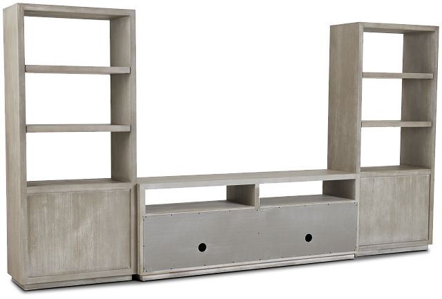 The Madden complete entertainment wall is the perfect addition to any living room. With its light tone base color and solid wood frame material, it exudes contemporary style. This entertainment wall is not only stylish, but also functional, offering ample storage space for all your electronics and media. Bring home the ultimate entertainment experience with Madden.