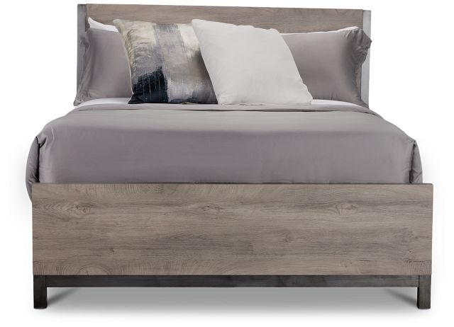 The Evanston bed is designed with contemporary flair for incredible value. The low-profile frame is built from solid wood, capturing an on-trend look that works in any bedroom. Enjoy a stylish contrast with the metal banding and melamine veneer—as seen on the headboard and footboard.